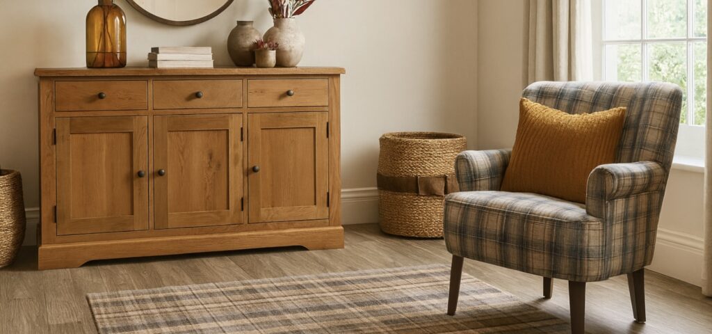 - It blends tradition with function – Rustic oak and artisan textures bring warmth while still being durable and easy to maintain.