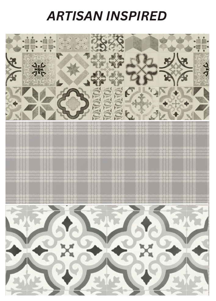 - Artisan inspired vinyls for bathrooms and laundries, where durability meets charm.